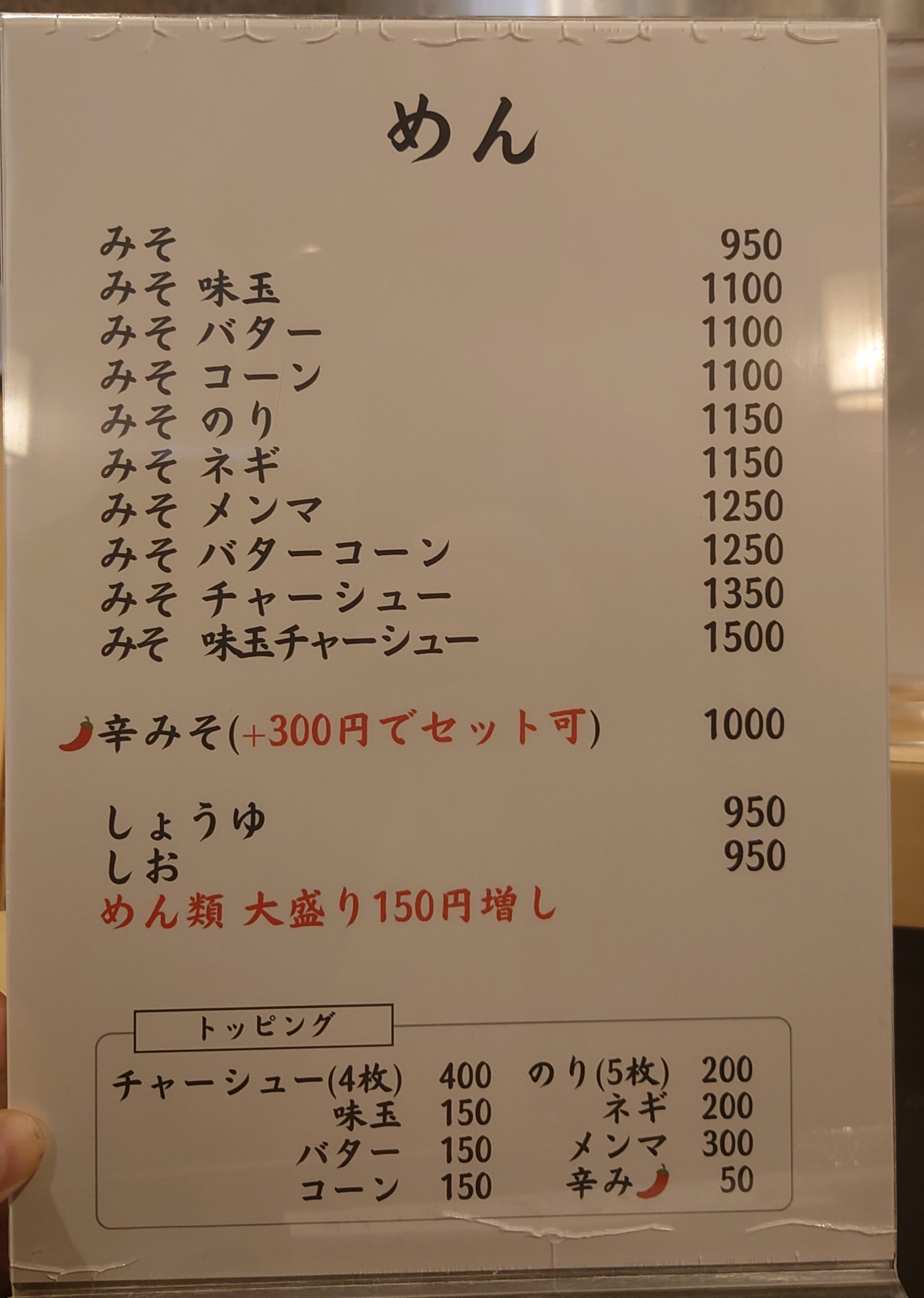 (町中華のラーメンに比べればお値段高めです。なにせ手間暇かけた札幌系ラーメンですので、コストがかかりますよね。そして他の札幌系ラー専店と比較すれば価格はいたって妥当かと思います💡)