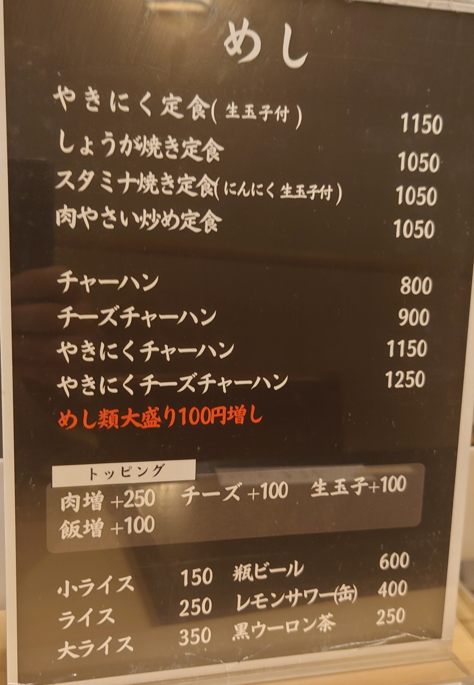 お店さんとしては「みそ」「チャーハン」「やきにく定食」がイチオシとお見受けします。