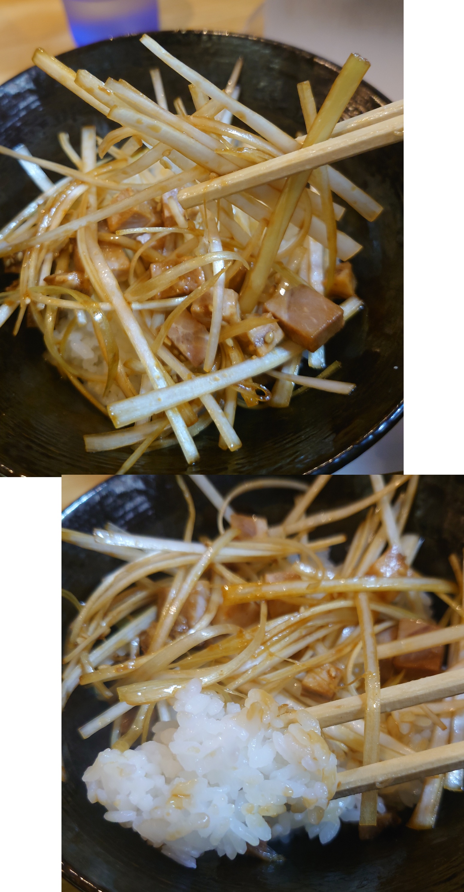 なんでもラーメンの醤油ダレで炒めているとのこと。それに砂糖やミリンも少し感じるかな🤔。