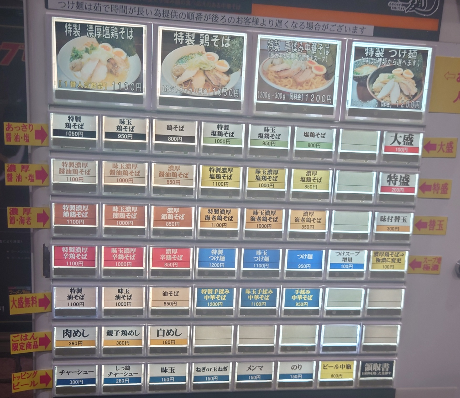 ※メニューについては詳しくはのちほど。鶴ケ谷本店よりも多彩なラインナップです!(予習無しで券売機に向かうと、たぶんフリーズしてしまうと思います(^^ゞ)