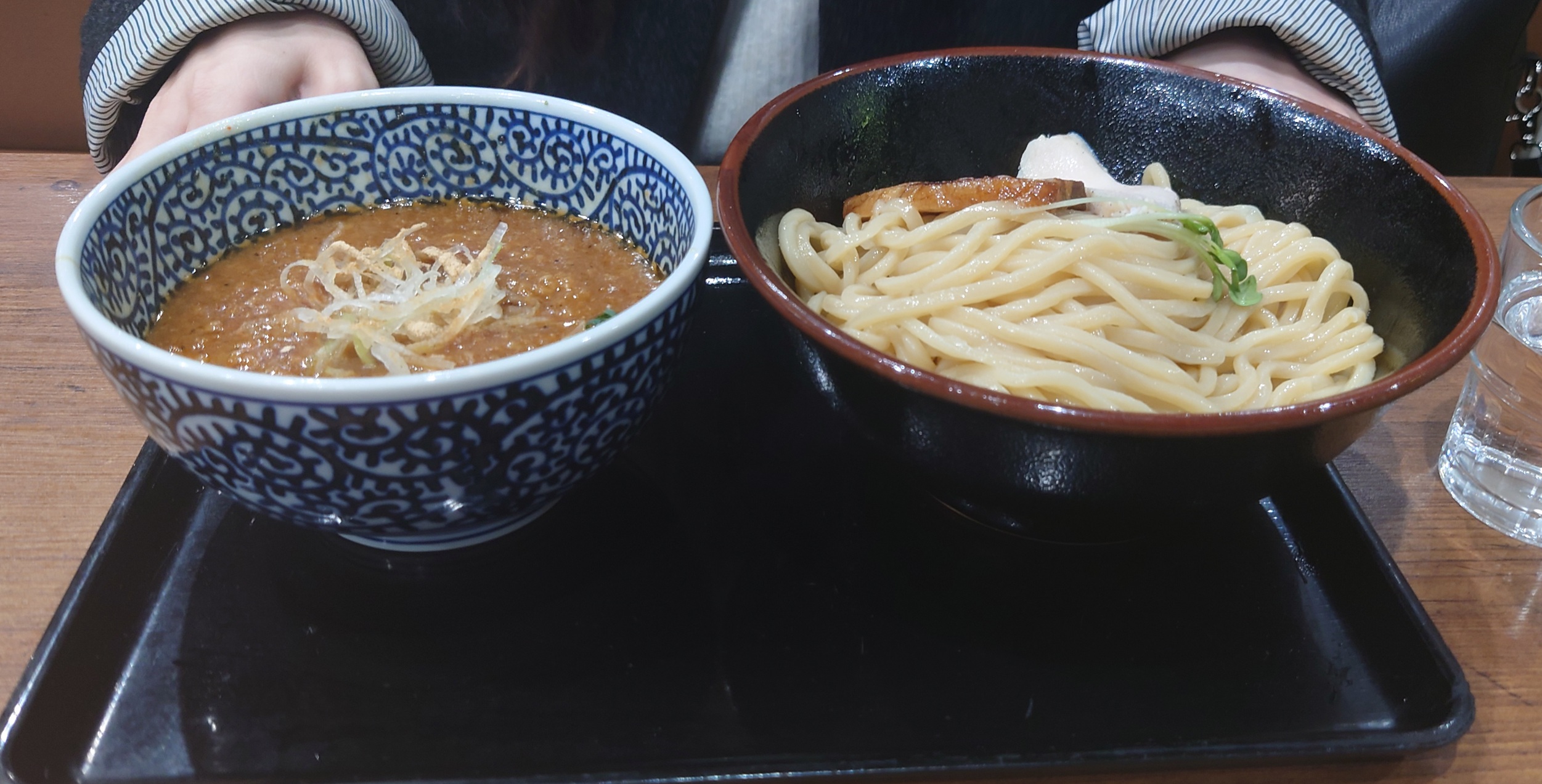 →「くまがい(鶴ケ谷)」さんの店主様は<とがし本店>さんの御出身。ということもあってか「とがし」グループ同様、「ドロドロ濃厚なつけ麺」です。