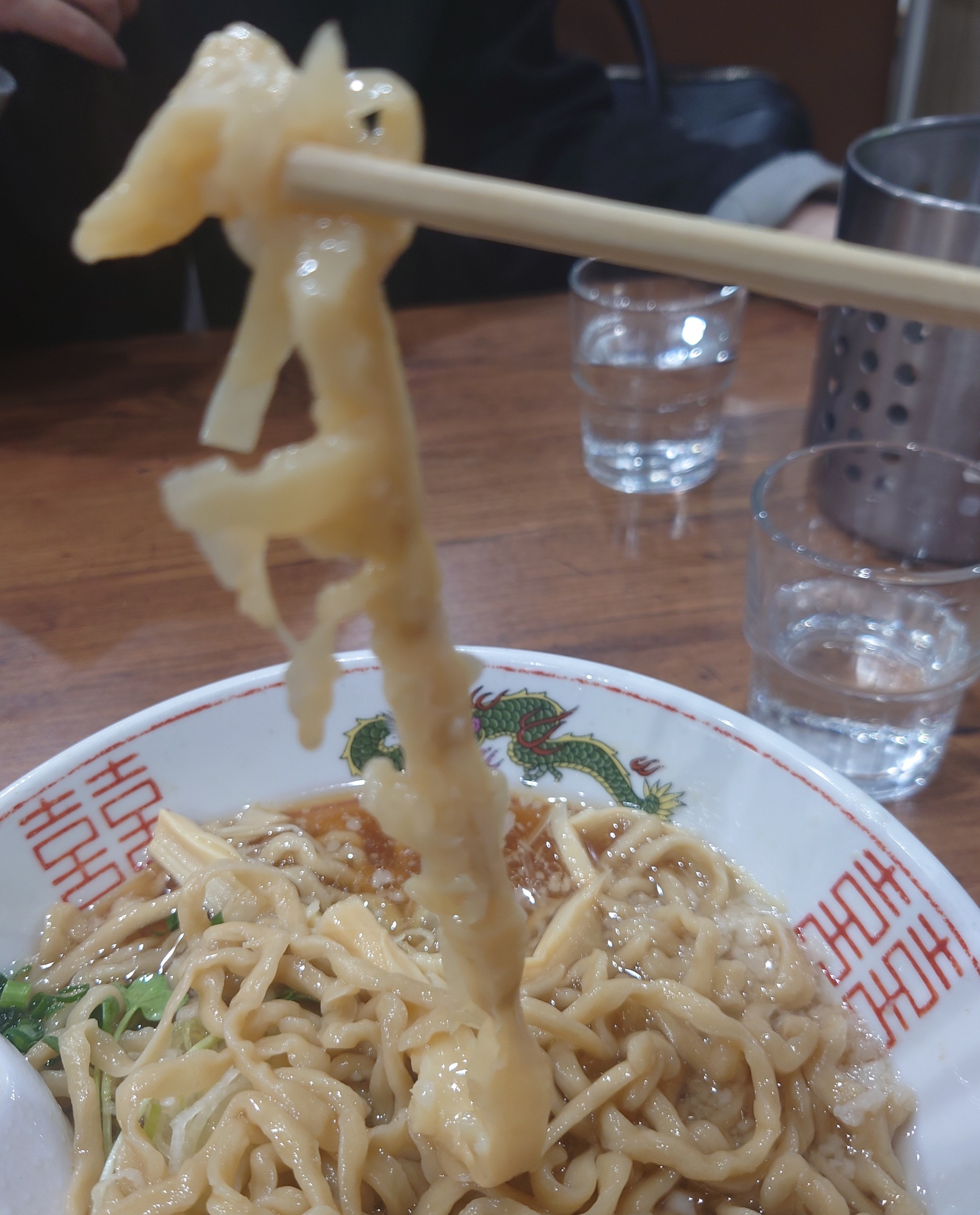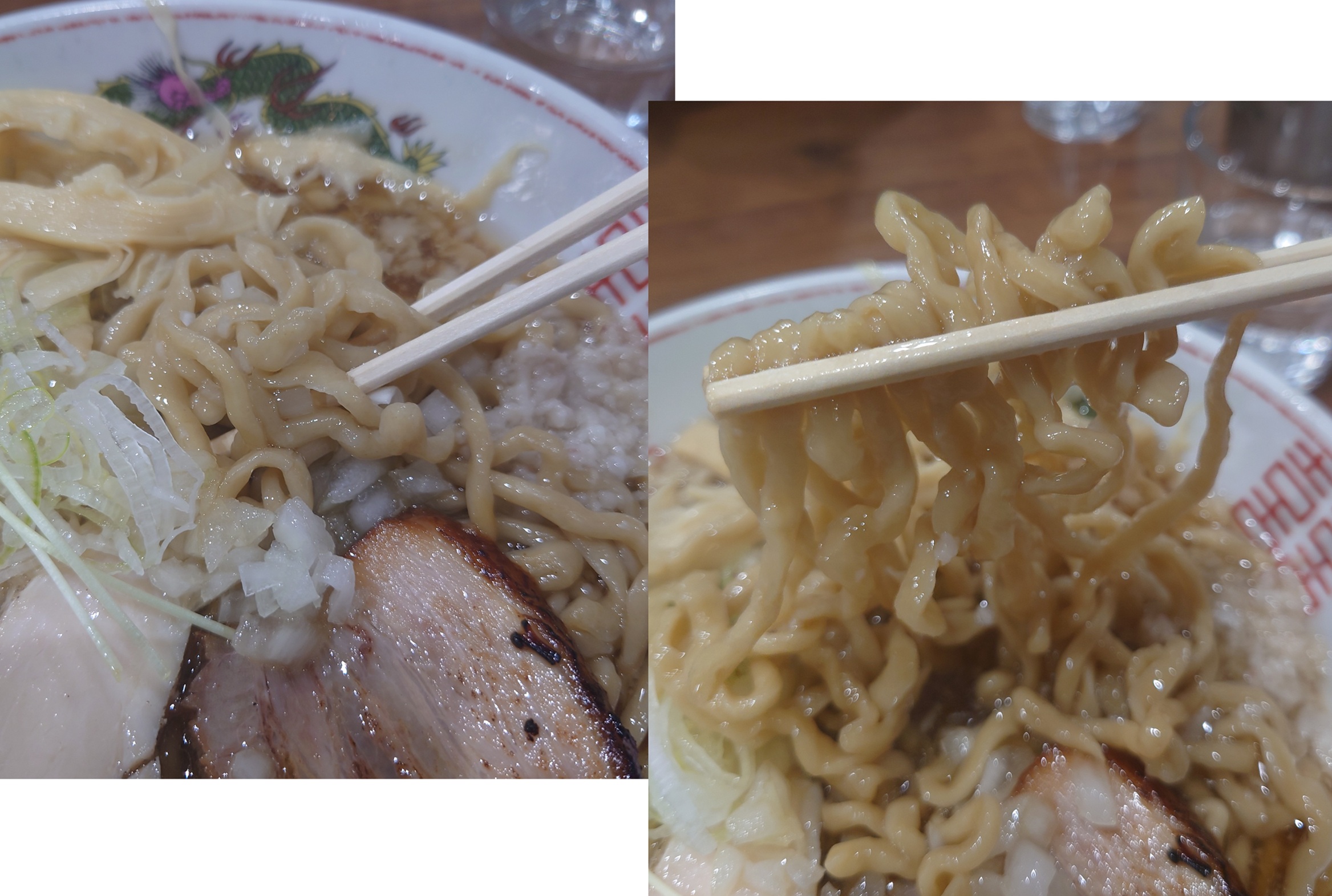 この手の「強暴な太麺」+「煮干し or 背脂スープ」のタイプ、