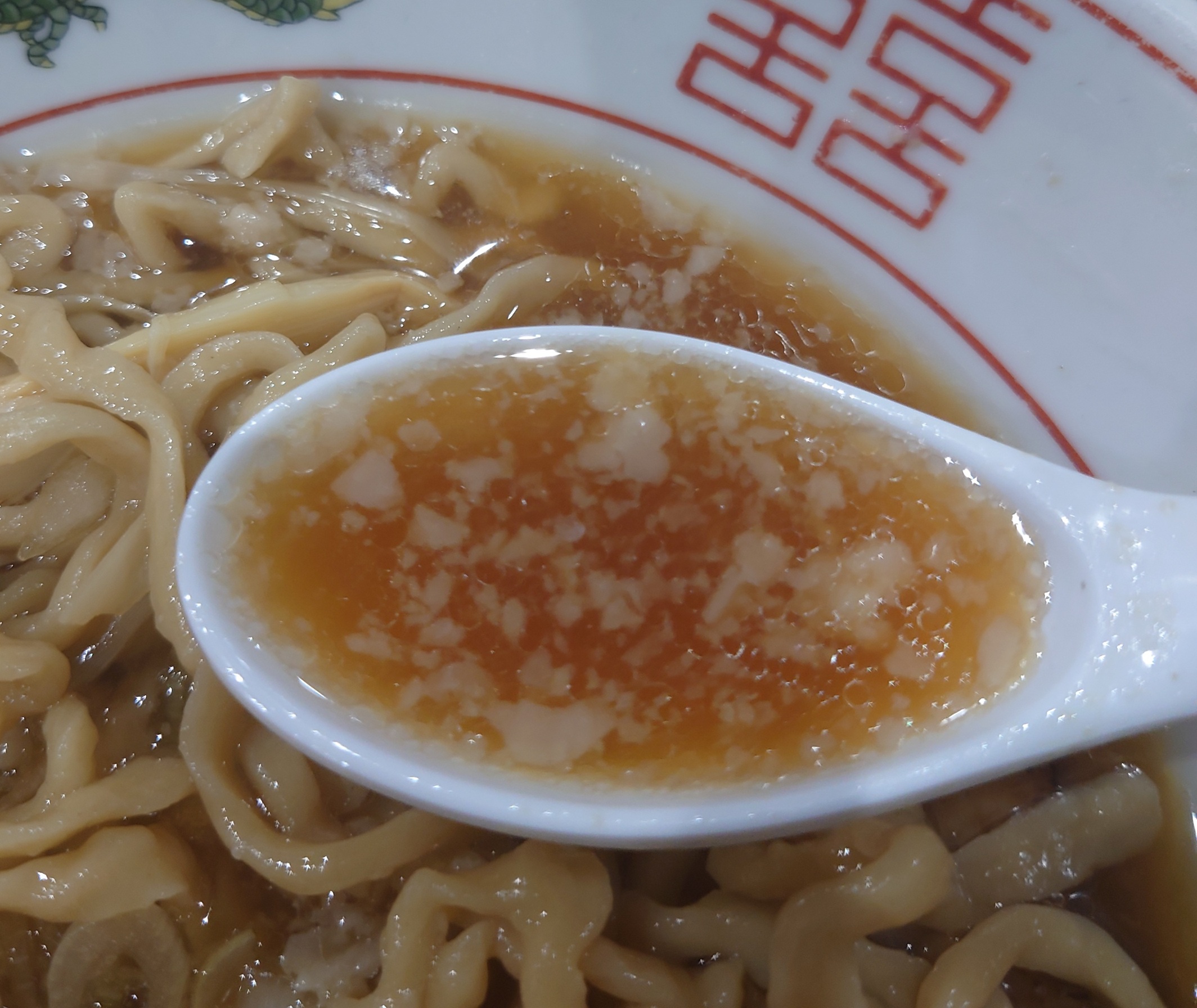→スープは、サカナ(煮干し)がメインで。それに背脂が加わった一杯。サカナがほわーんとするスープですが、そんなにニボニボしていないし背脂の甘みも一役かっていて、なかなかバランスの取れた味わい。(おっと、、、食レポする前に詳しく語ってしまった💦)