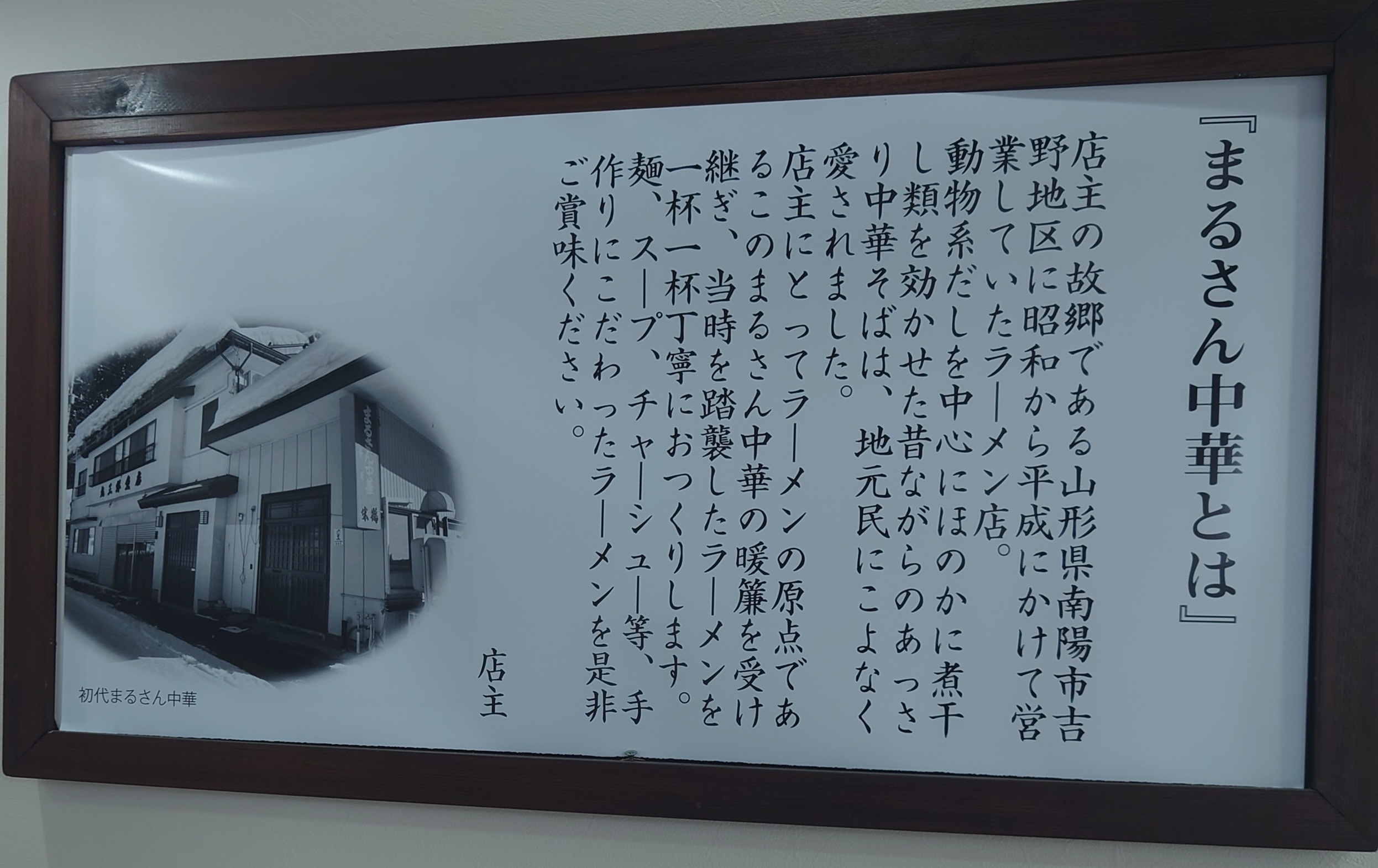 →店主様の故郷、山形県南陽市吉野地区で昭和から平成にかけて約40年営業していたラーメン店「まるさん中華」。