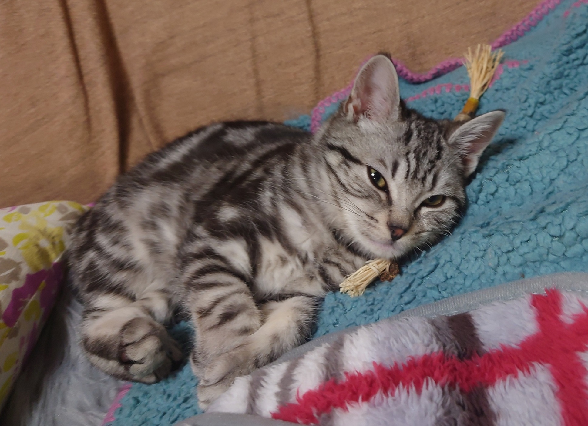 寝ては遊び・・・また寝ては遊びの生活リズム。(羨ましい・・・来世は猫に生まれ変わりたい)