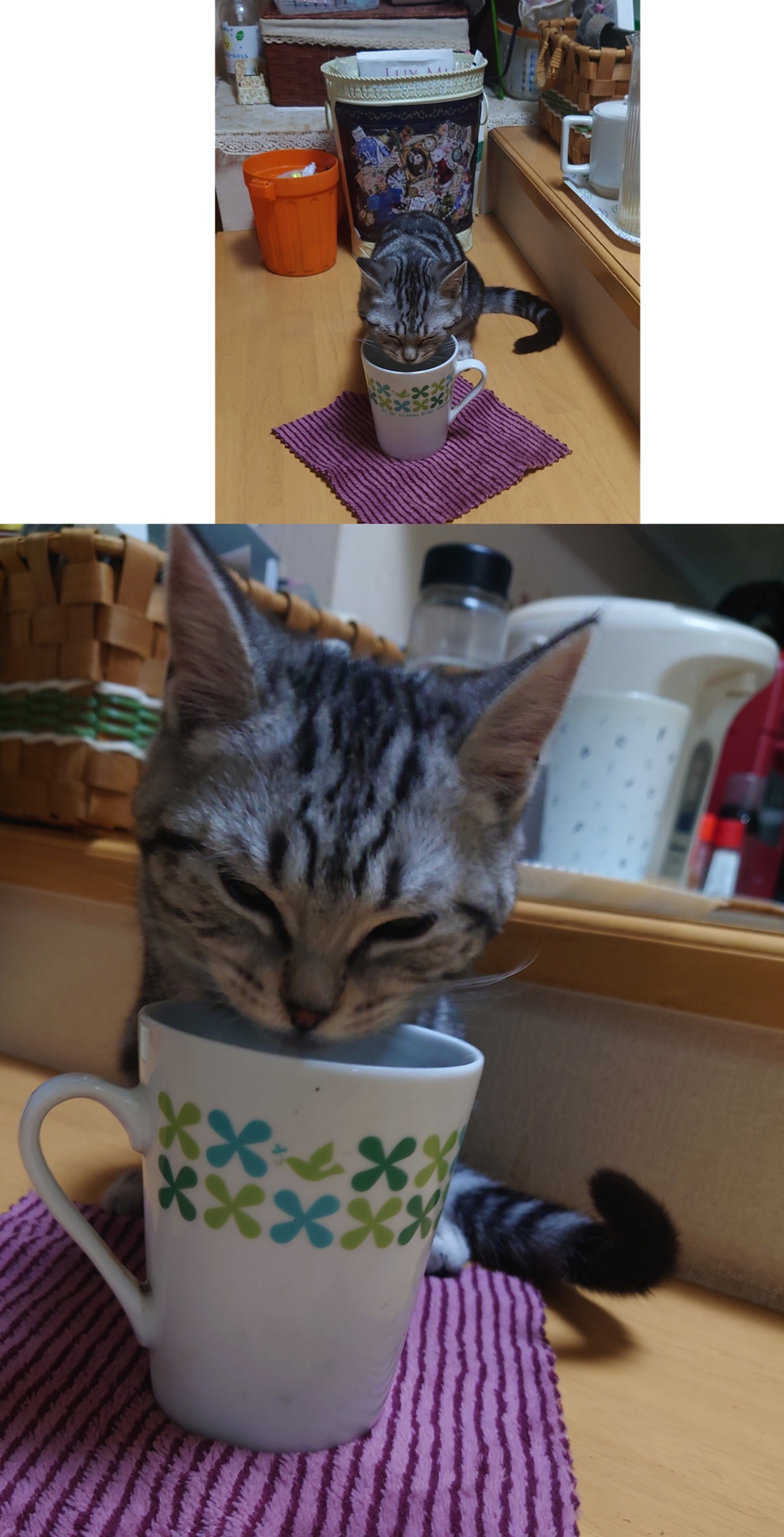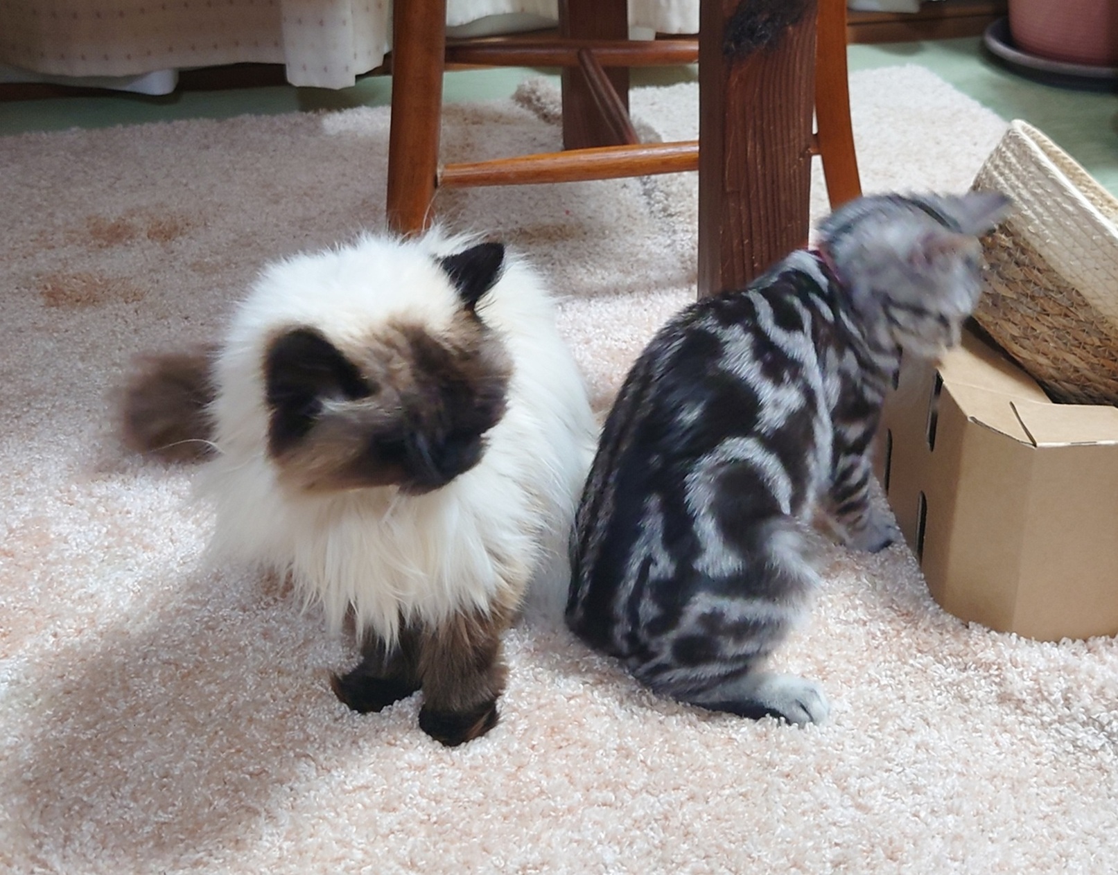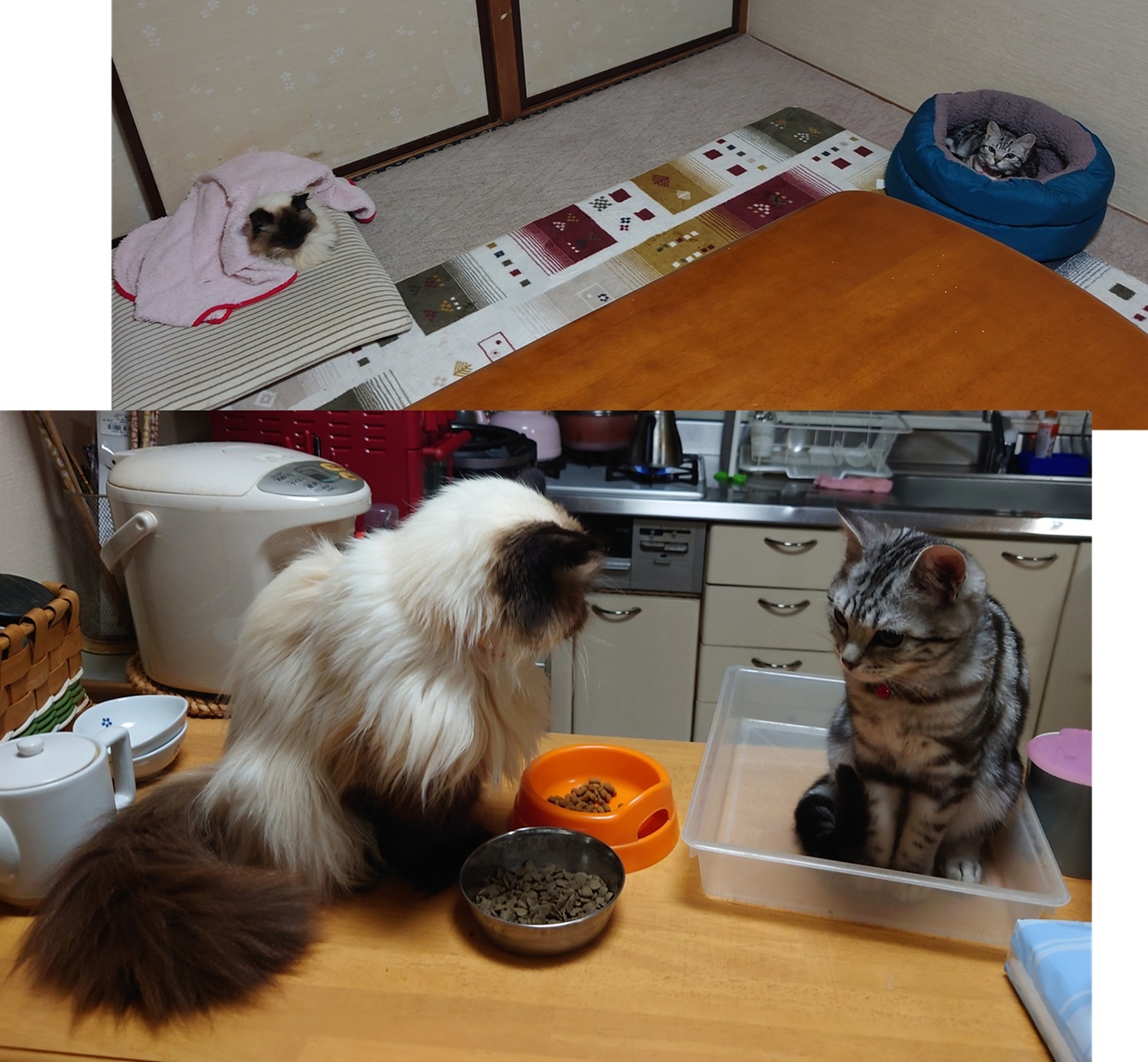 一緒に映っているのは我が家の先住猫、ヒマラヤンのモップ(♀)。