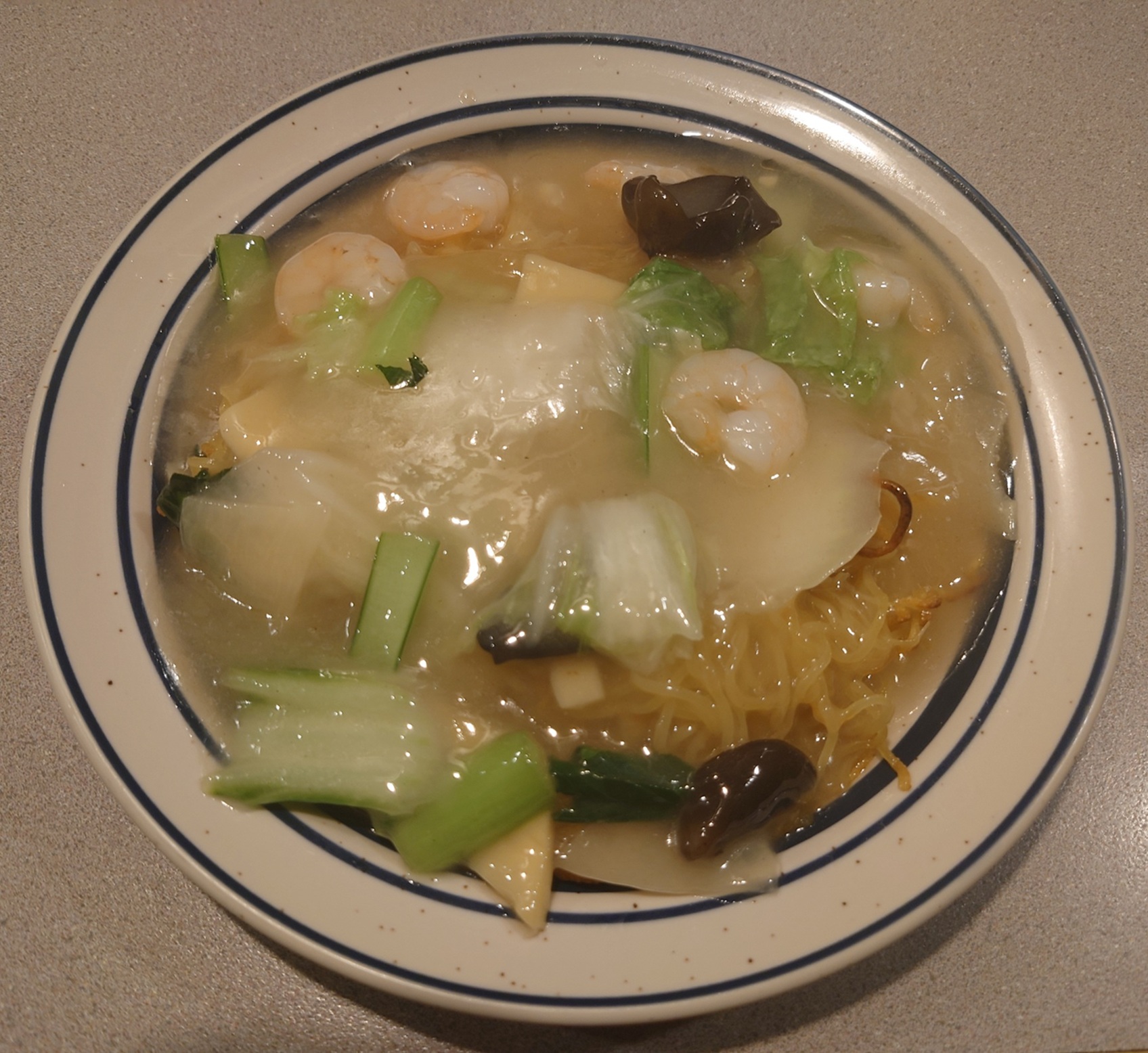昭和の町中華ファンにはたまらないビジュアル♪。すごく上品な塩餡(昭和50年台~60年台の当一番町界隈の町中華の雰囲気が漂う、そんな餡かけ焼きそばです)。