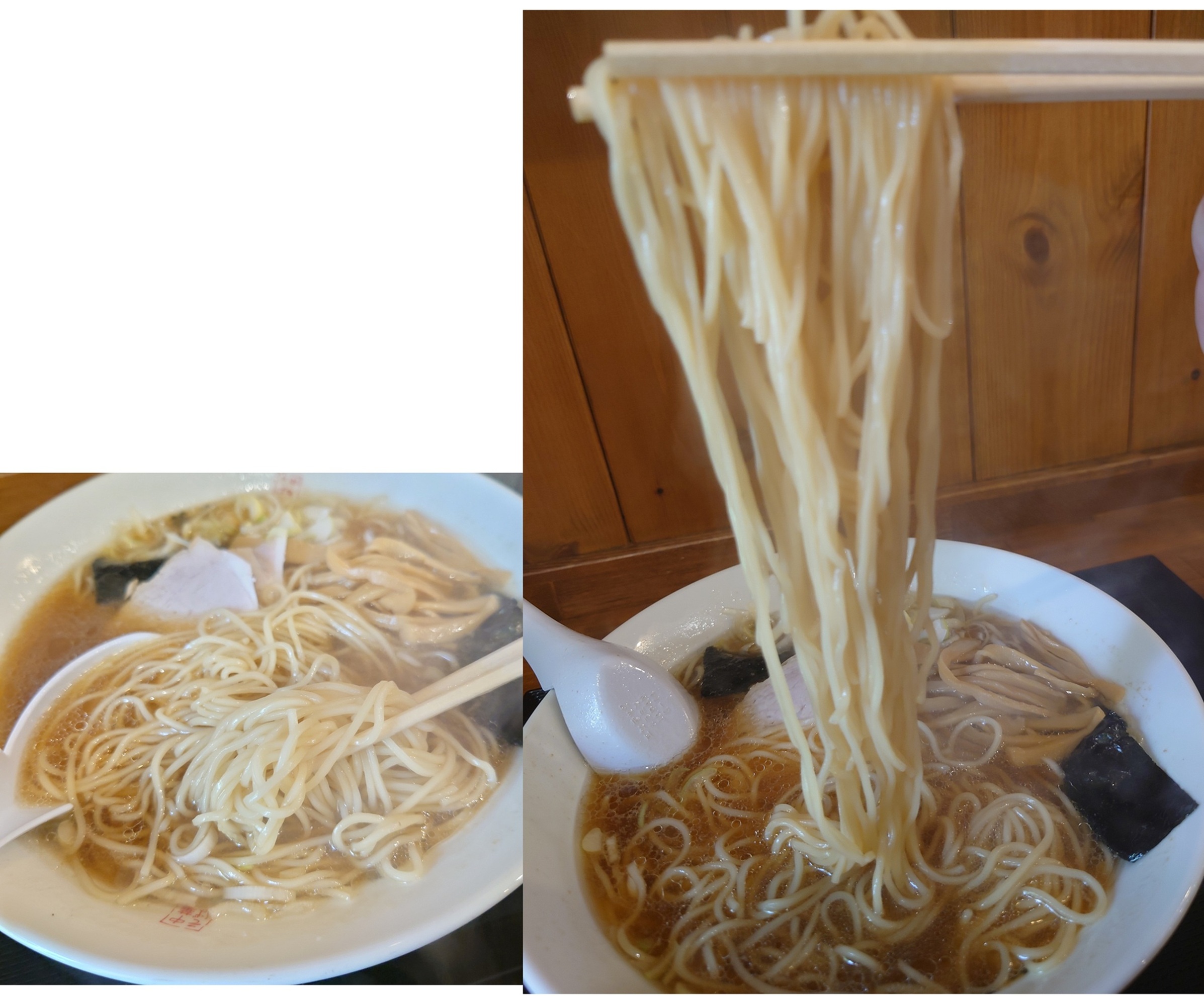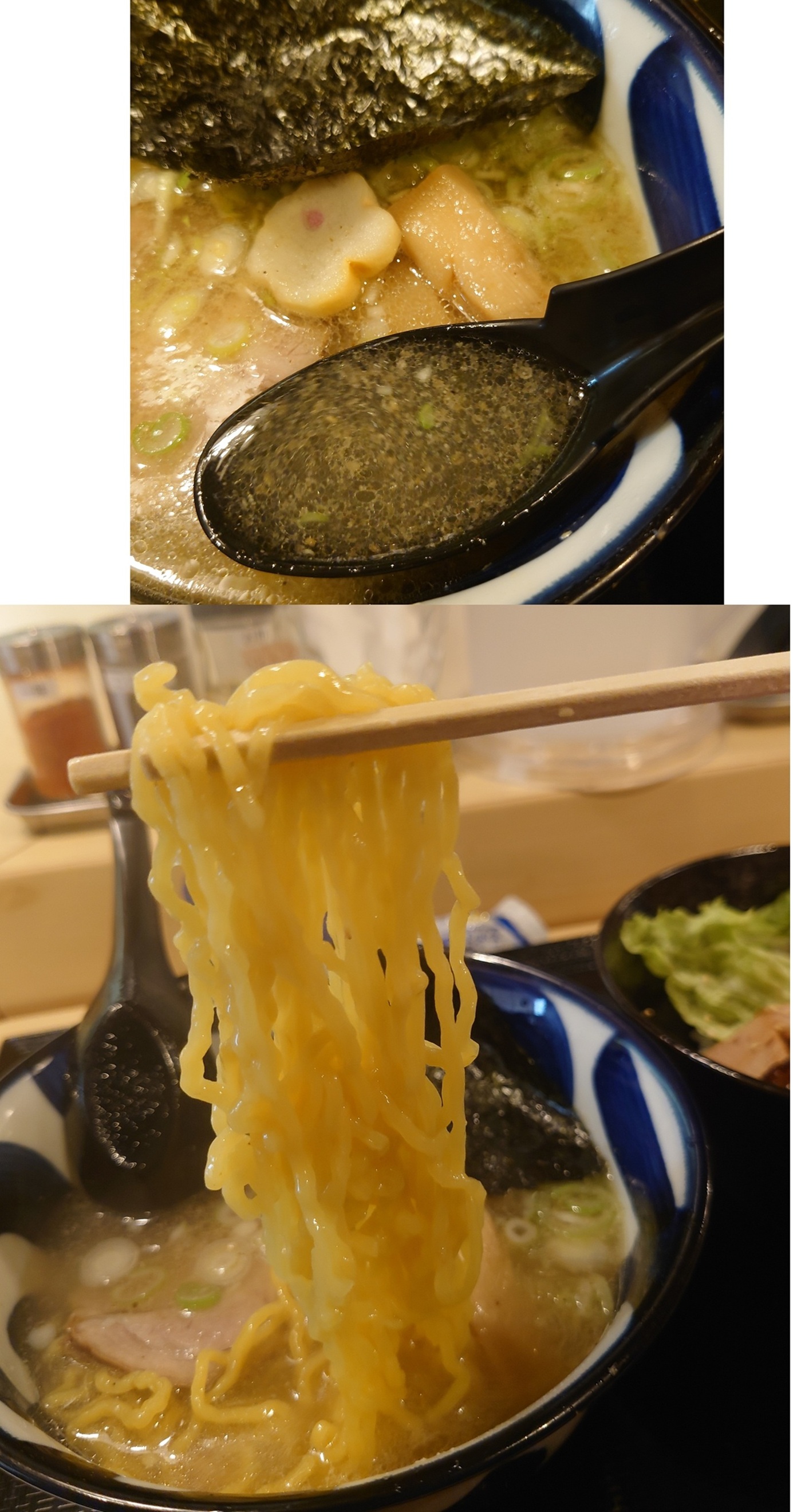比較参考として、白石のスープはかなり鶏油多く煮干しも灰汁がうくとても武骨なスープで、個人的な好みではあれば別格の美味さ!。 こちらのスープはそれと比較すると結構エレガントでまろやかな印象。あちらには負けるけどこちらのスープもとても好きです(`・ω・´)b。