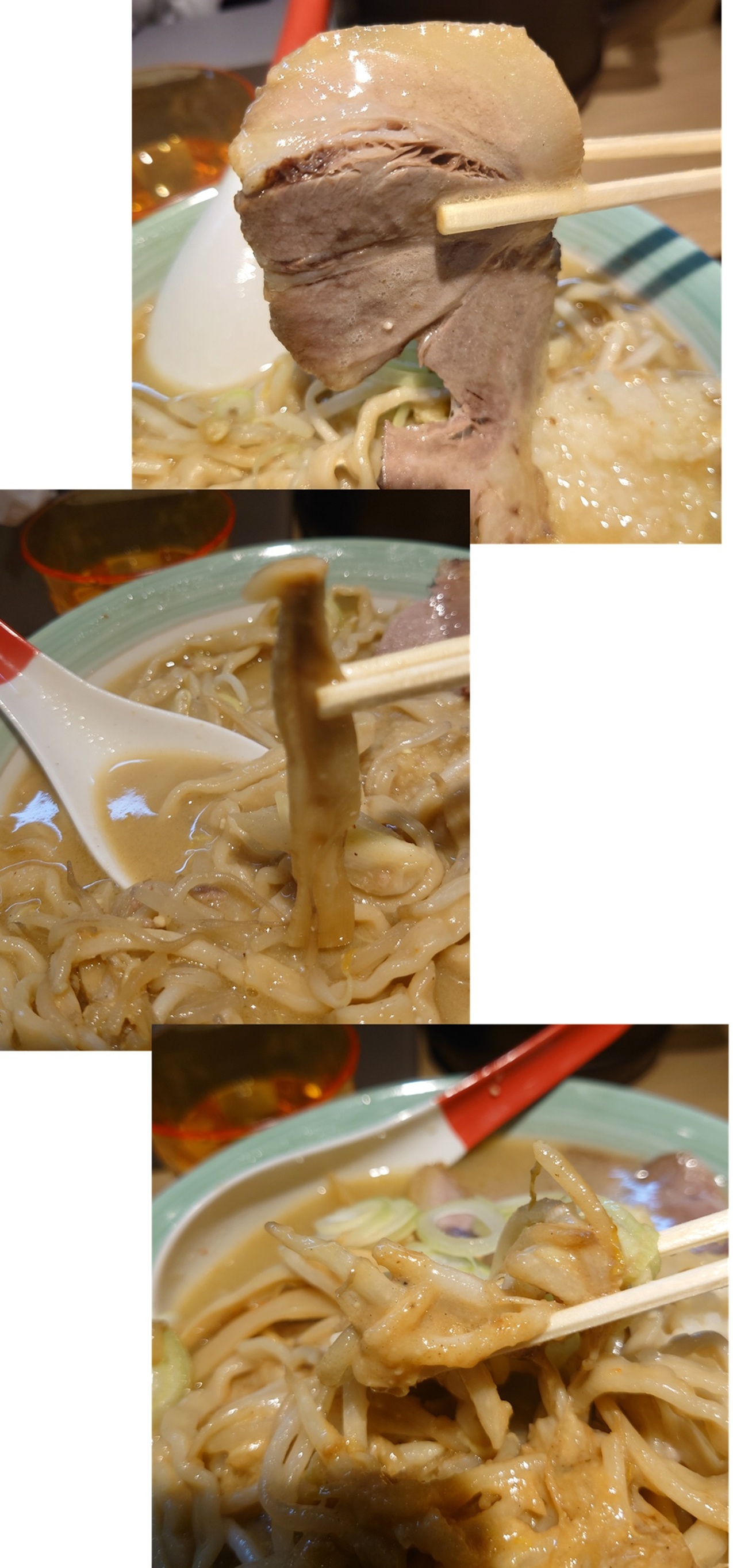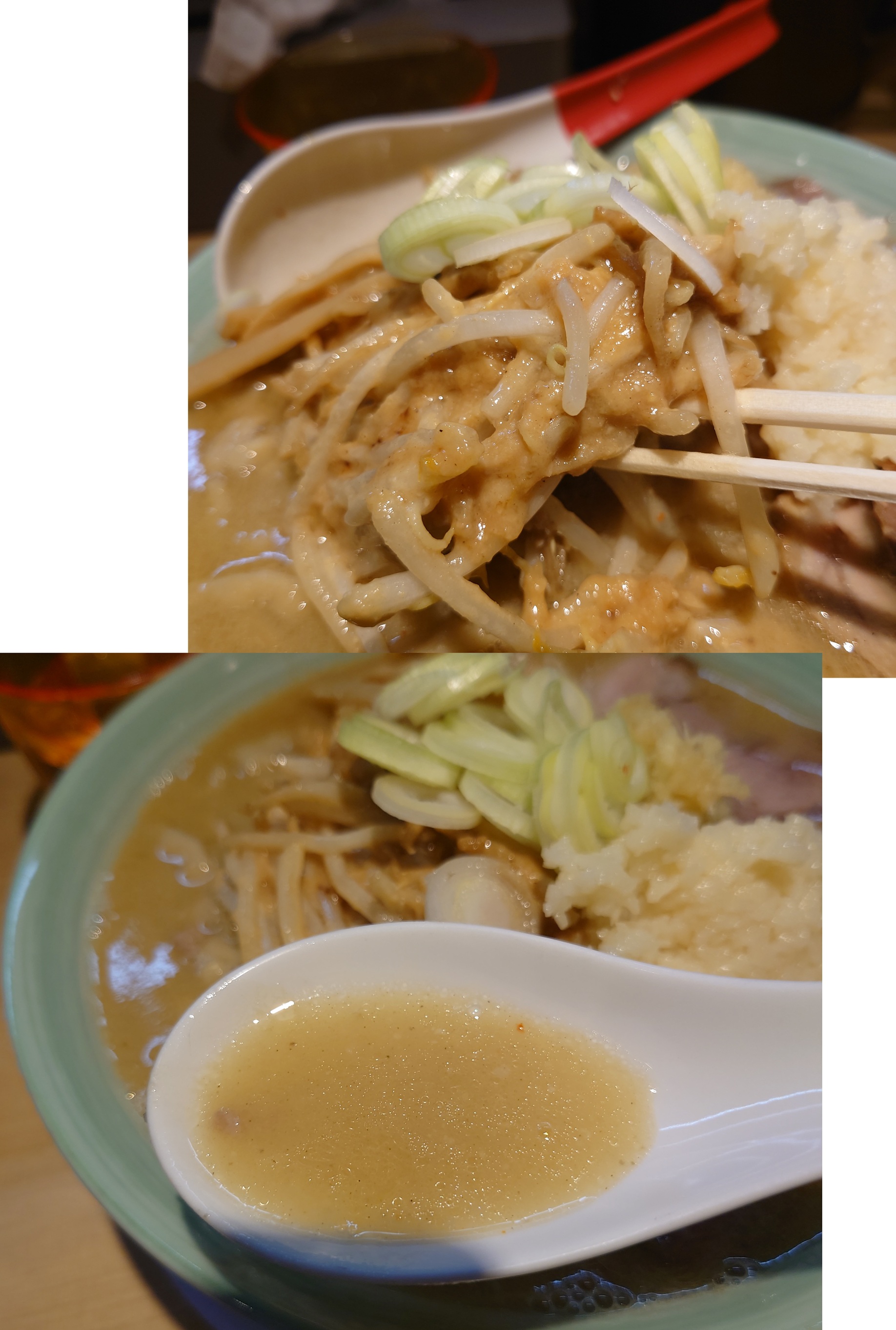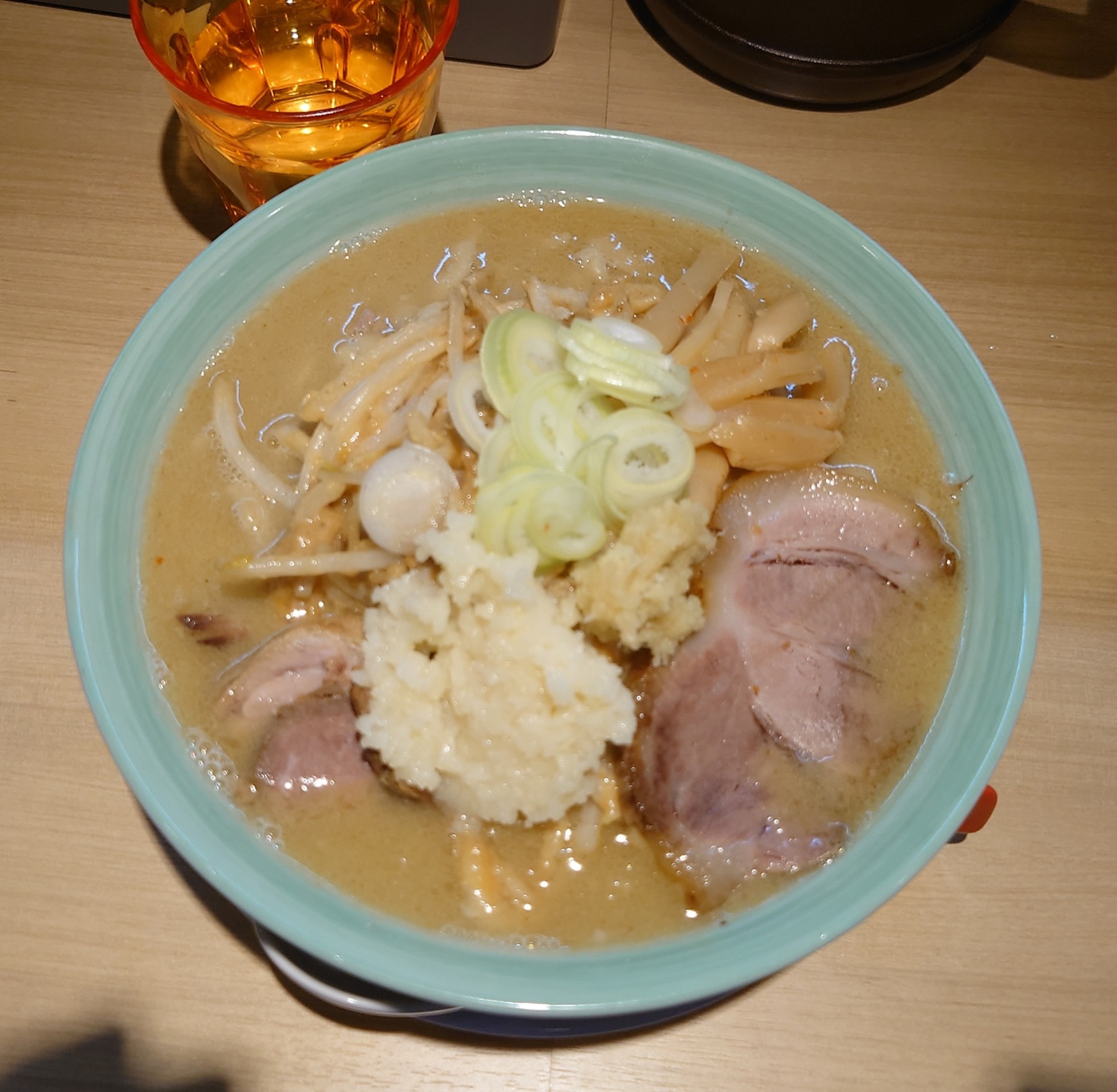 スープをズズズ・・・・・。炒め野菜の香ばしさがグワーンとくる。旨味が濃縮されている。濁りが旨味だ。そして濃厚なんだけどニンニク感じないので優しい味わい。