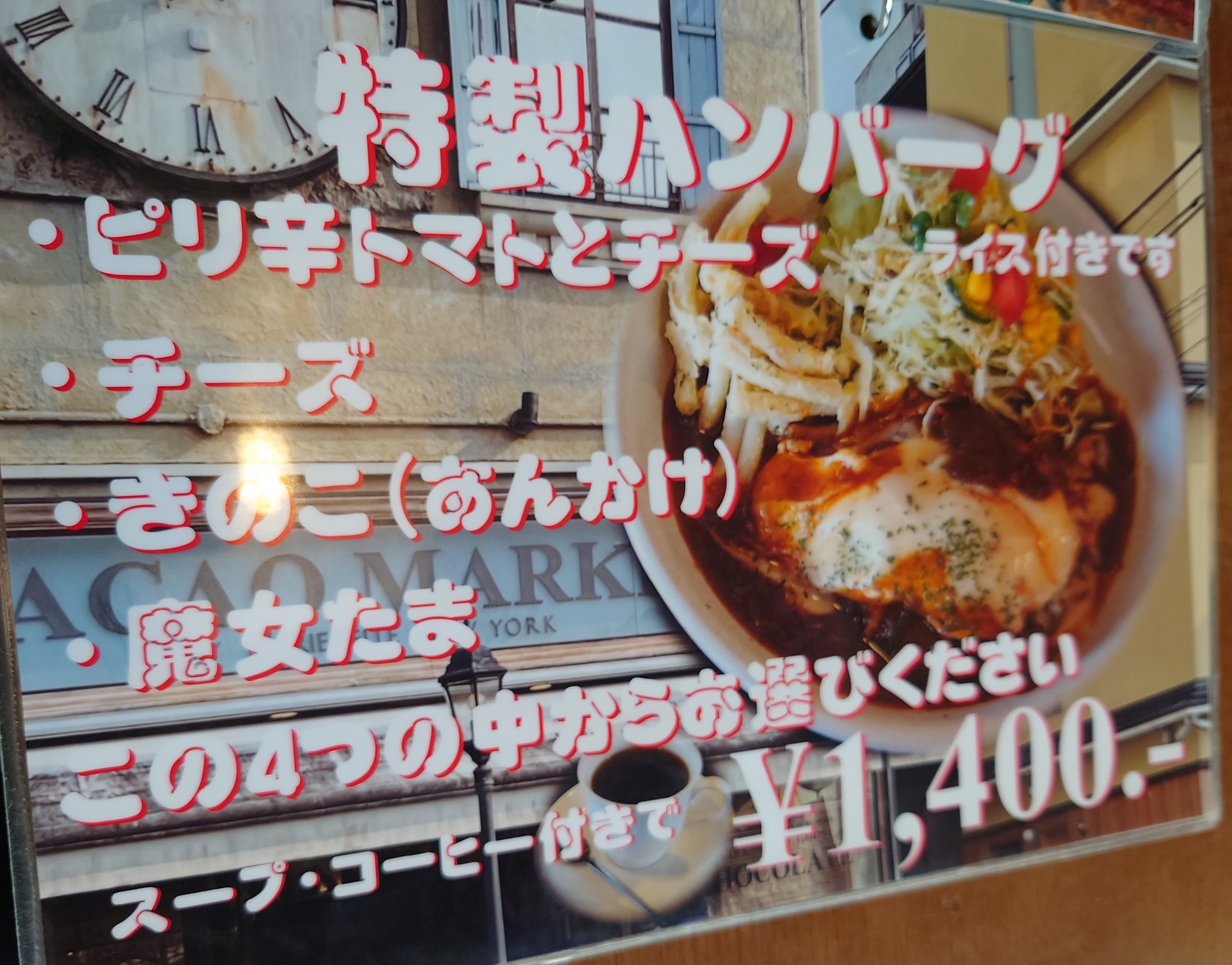 前回(10年前)は、僕は「はらぺこセット」、相方は「魔女ハンバーグ」を食べました。