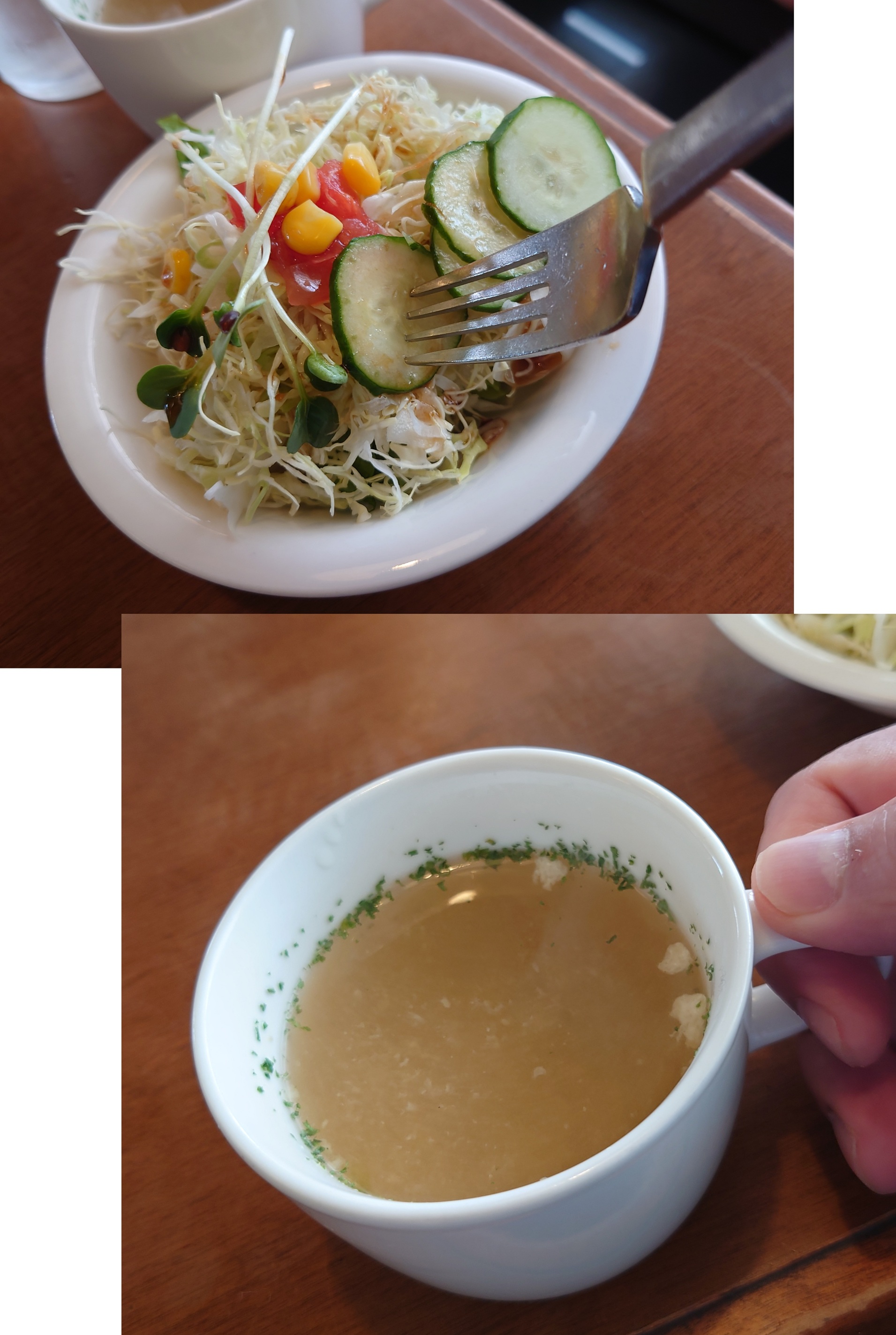サラダとスープ。