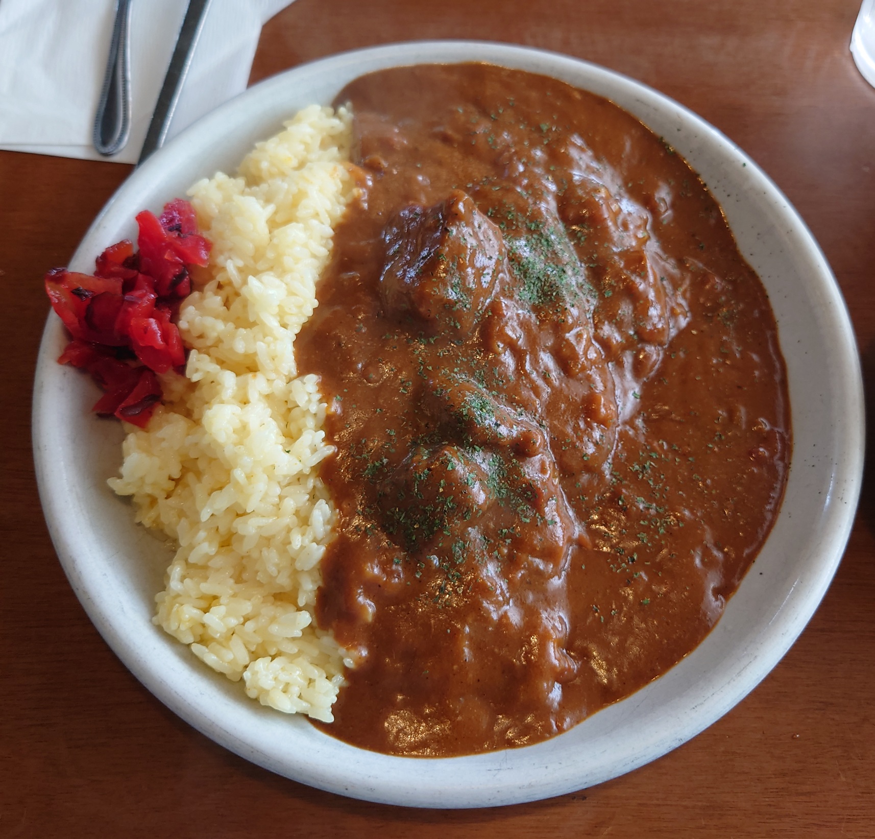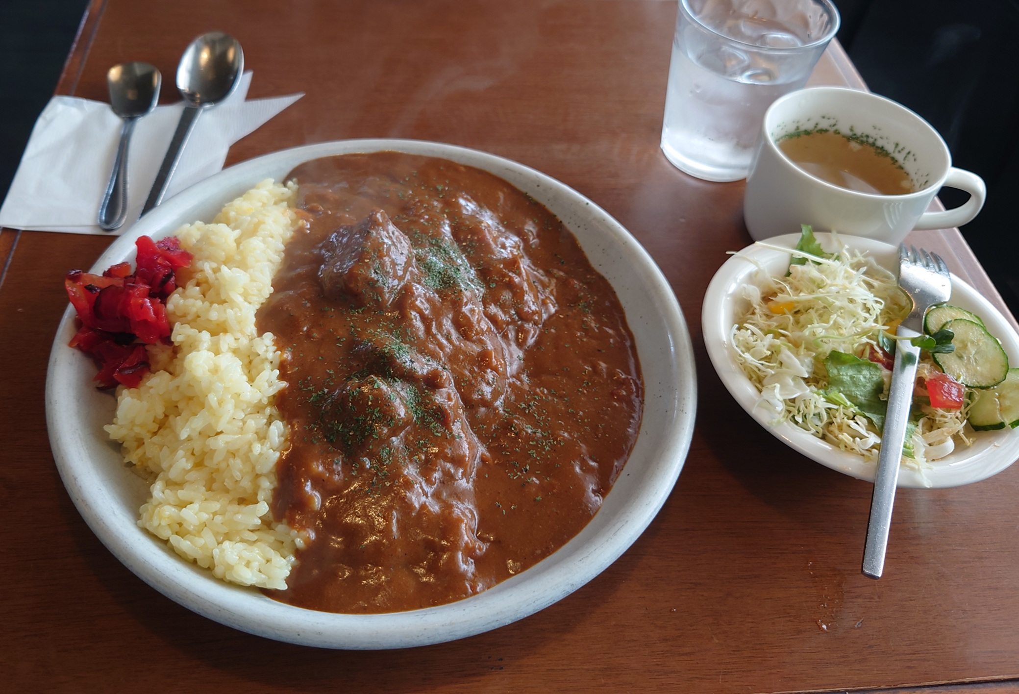 昔ながらの喫茶店カレー風の味わいではなく、見た目どおり本格的な洋食店の味わい。