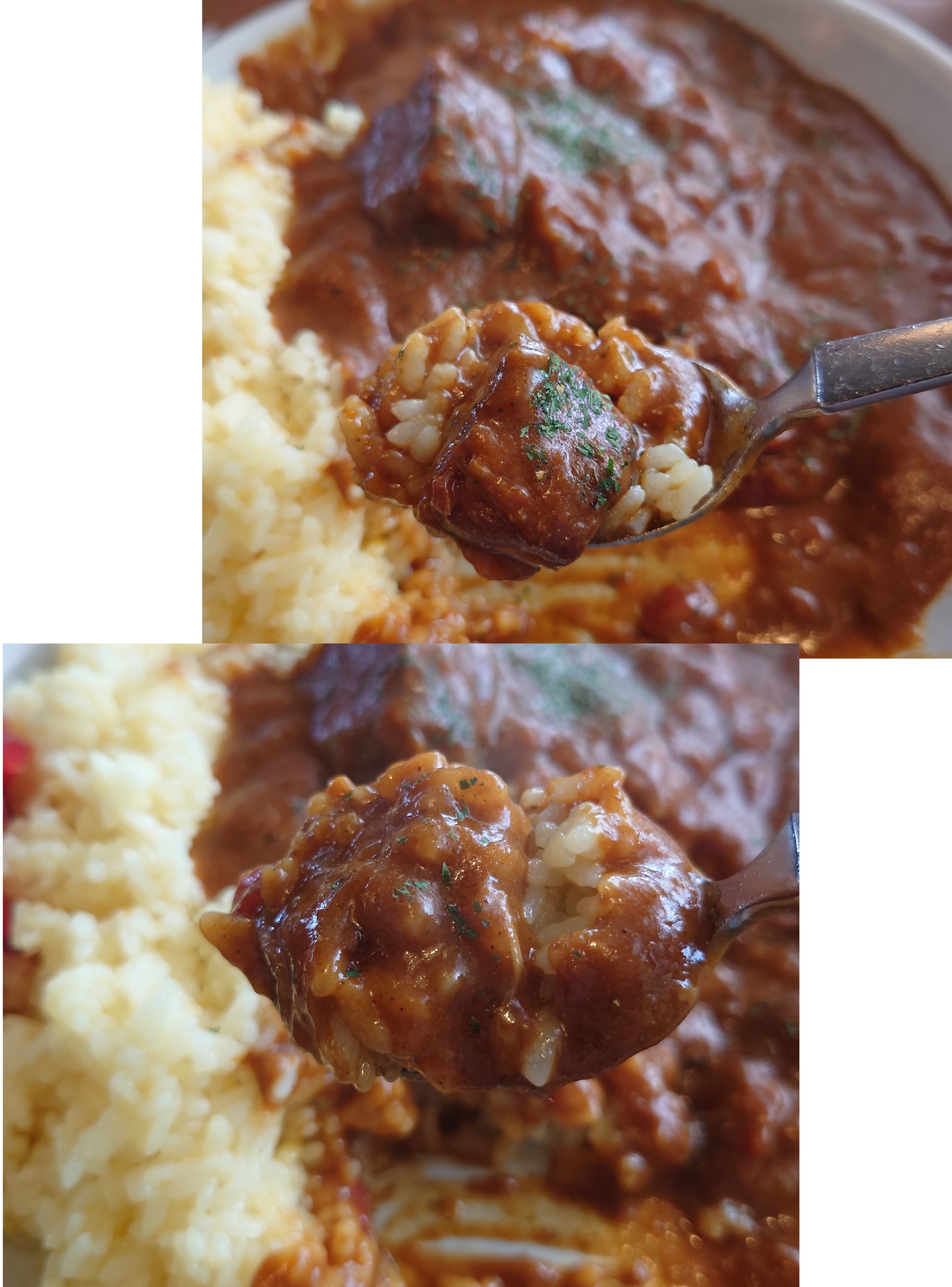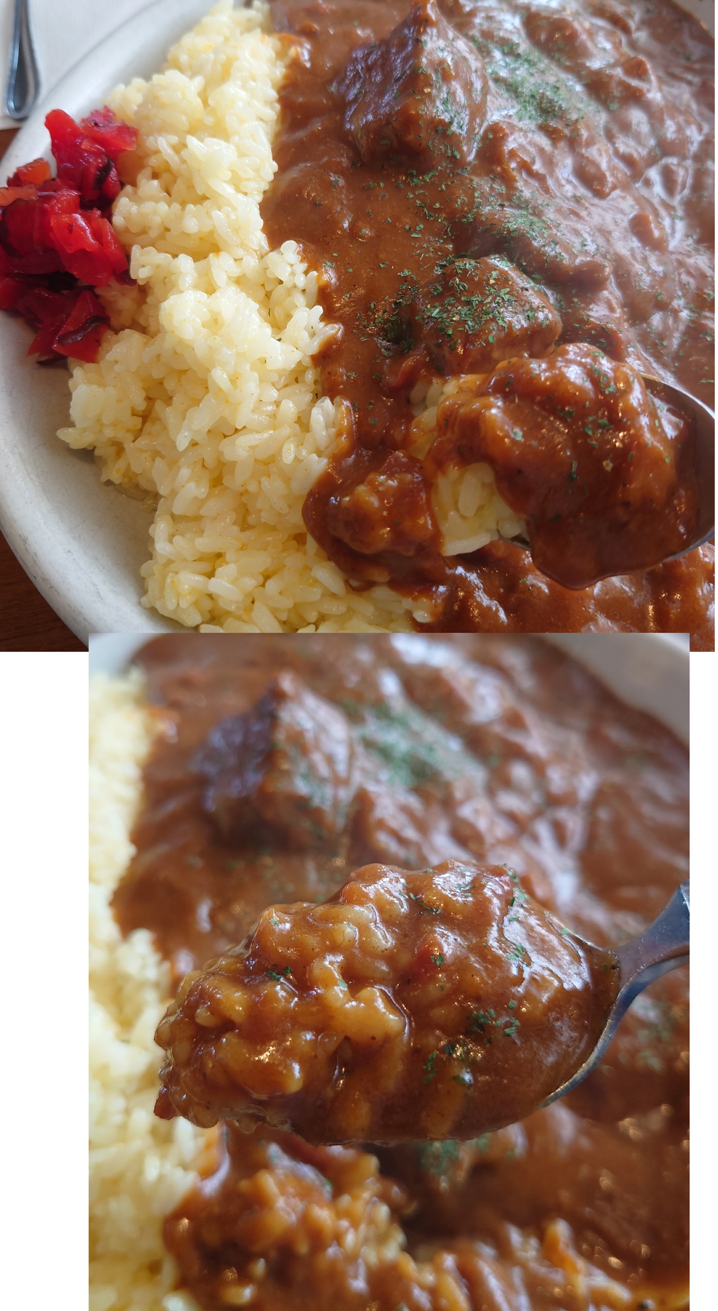 濃厚なカレールーと一緒にサフランライスをかき込みます。スプーンが止まりません。