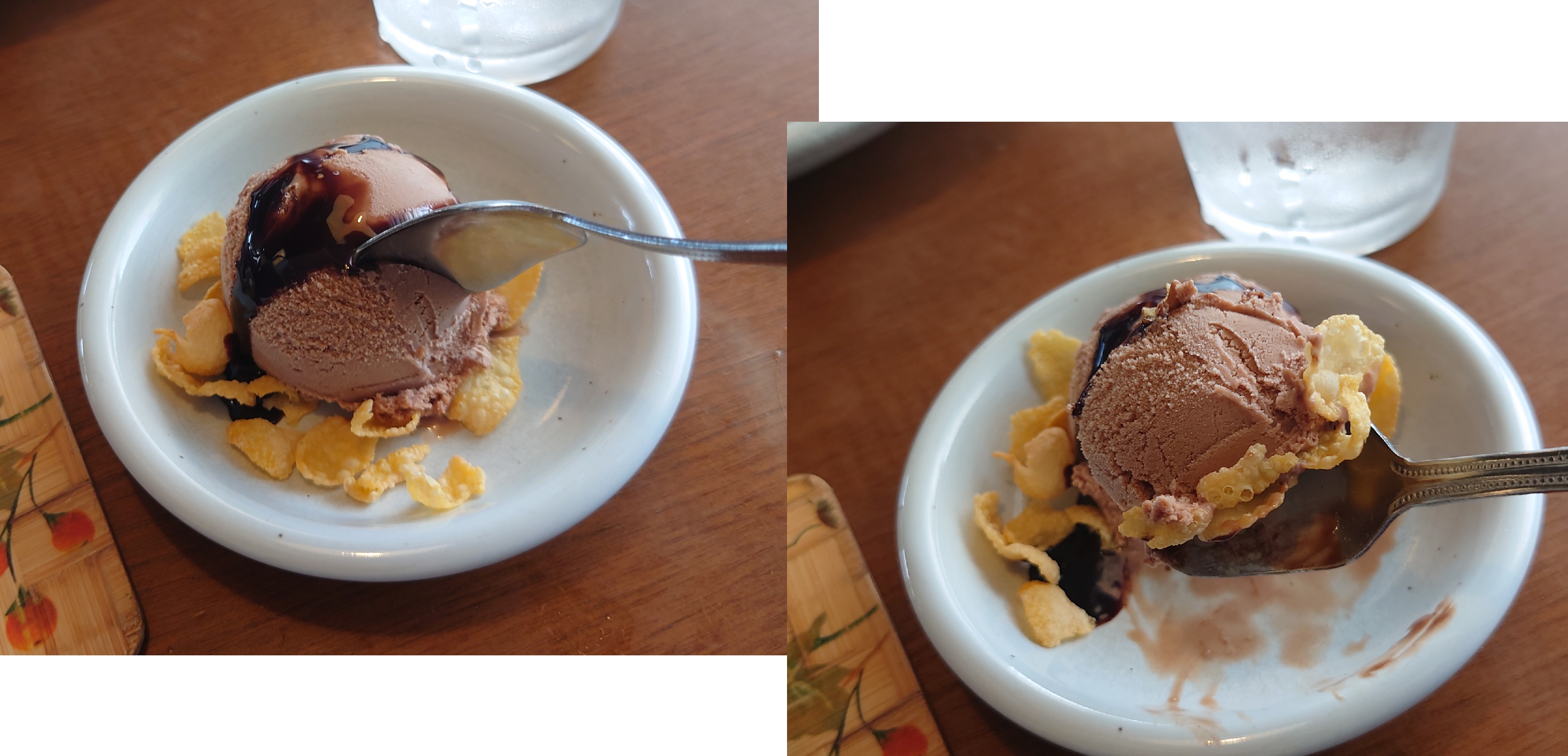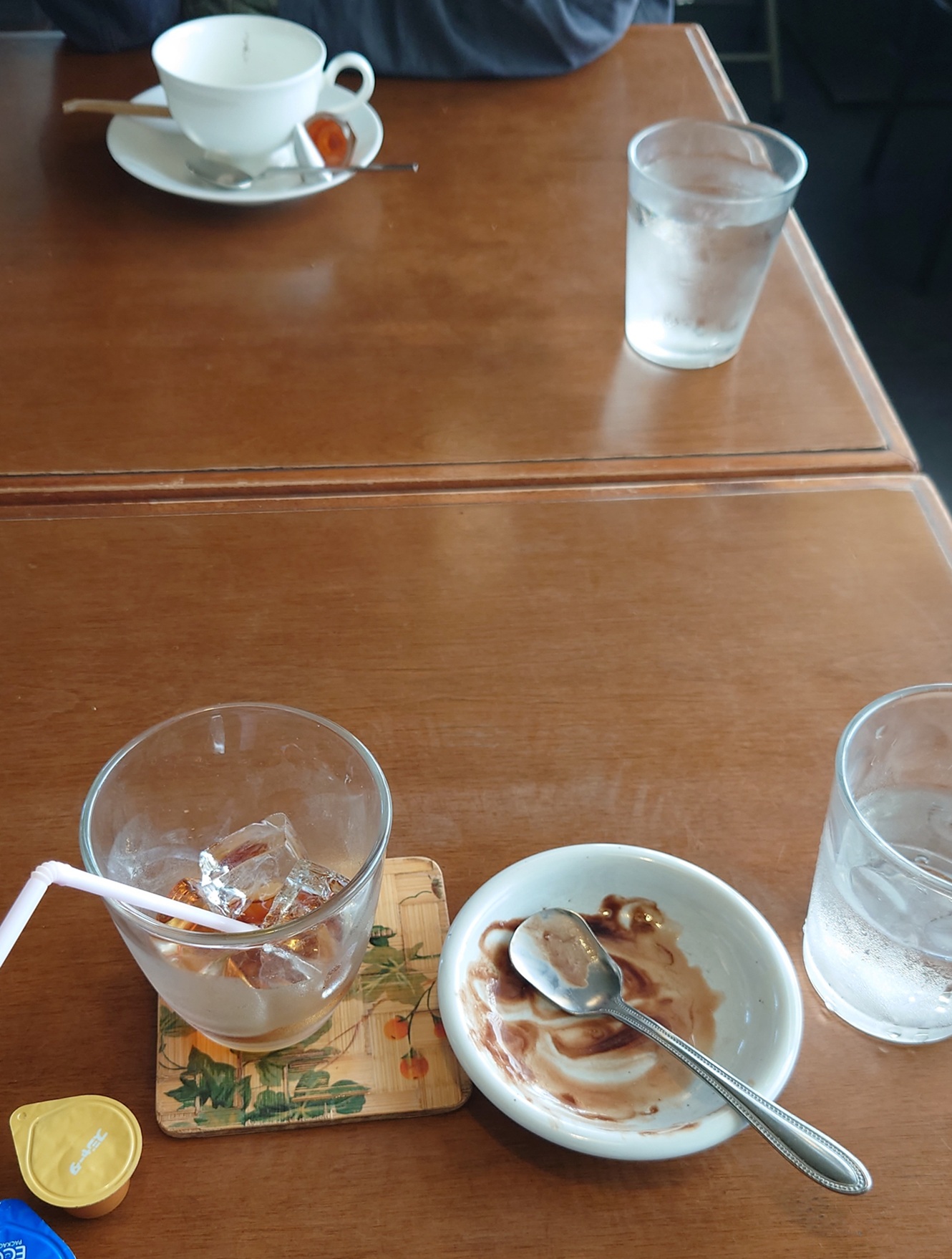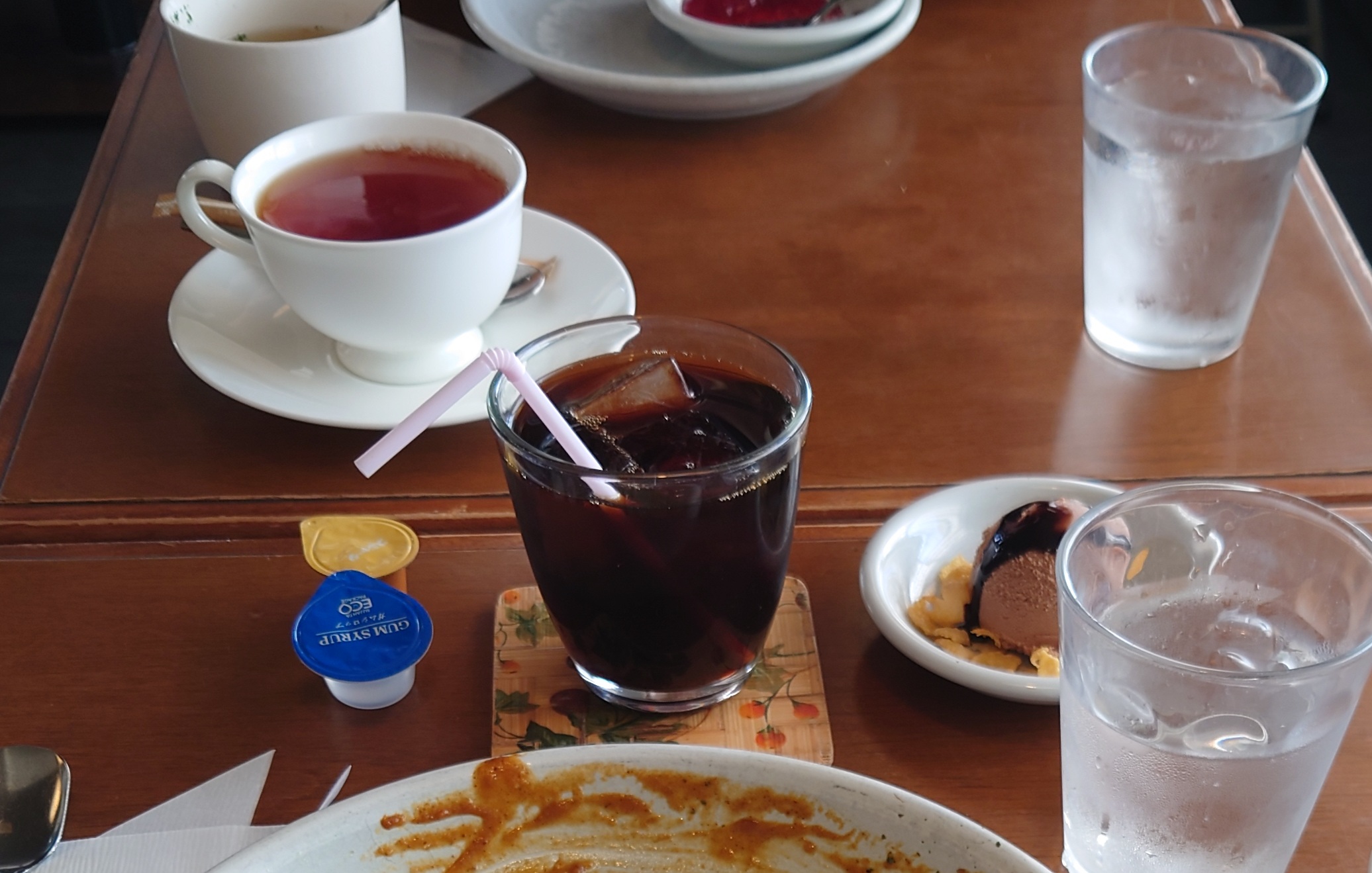 食後にアイスコーヒーと紅茶がサーブ。そして僕のチョコのアイス付き。