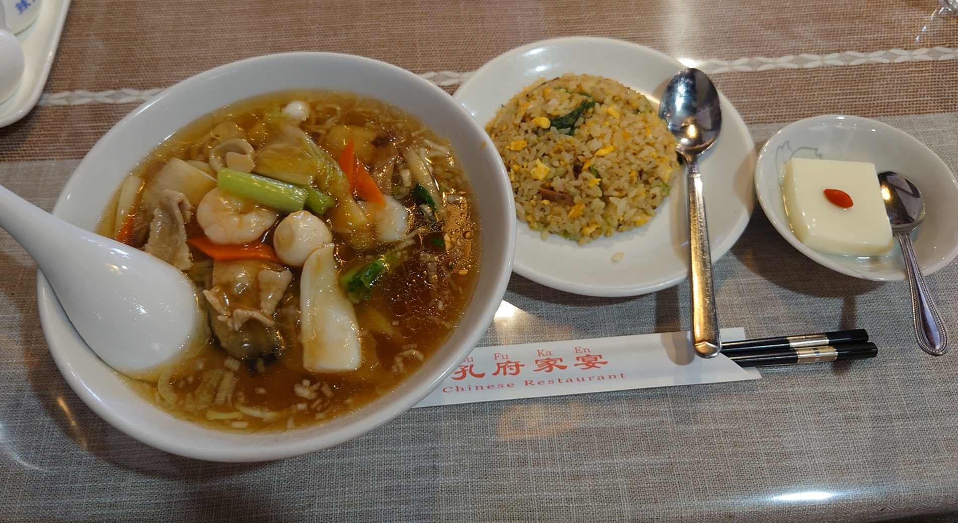 ・五目焼きそば: 少し甘めの餡が特徴で、具材にチャーシューやメンマが入っている珍しいスタイルです。