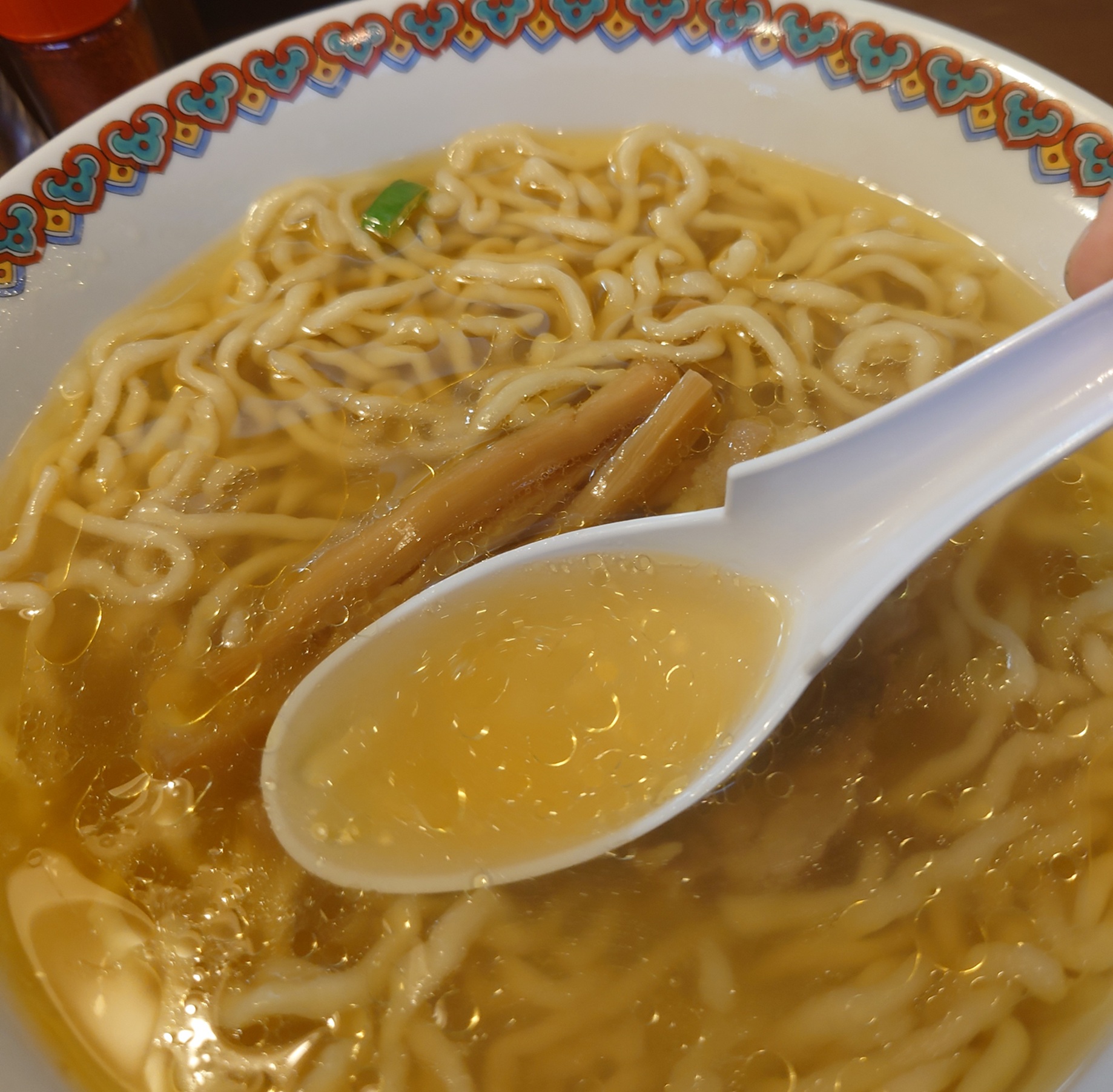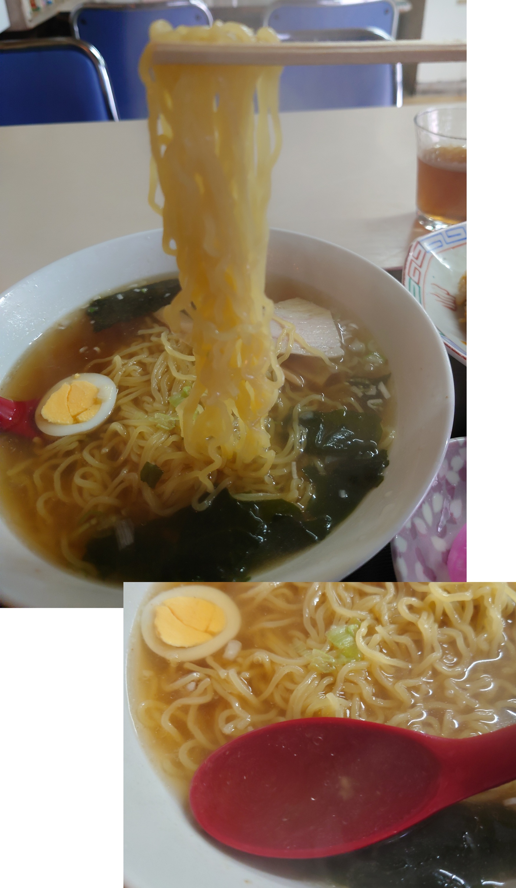 ラーメンはとてもオーソドックスなビジュアル。味わいも見た目どおり。優しいスープにごくごく普通の麺。まぁ、食堂のラーメンです。