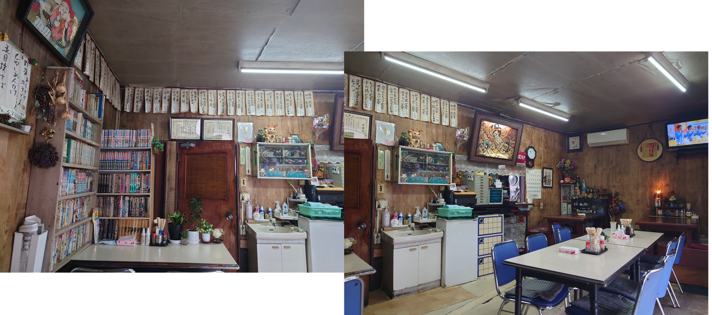 木目のテーブルや、どこか懐かしいパイプ椅子。長年、地元の人々を支えてきた「生活の跡」がなんともエモい♪(まぁ、こういった雰囲気は好みは別れますかね?。)