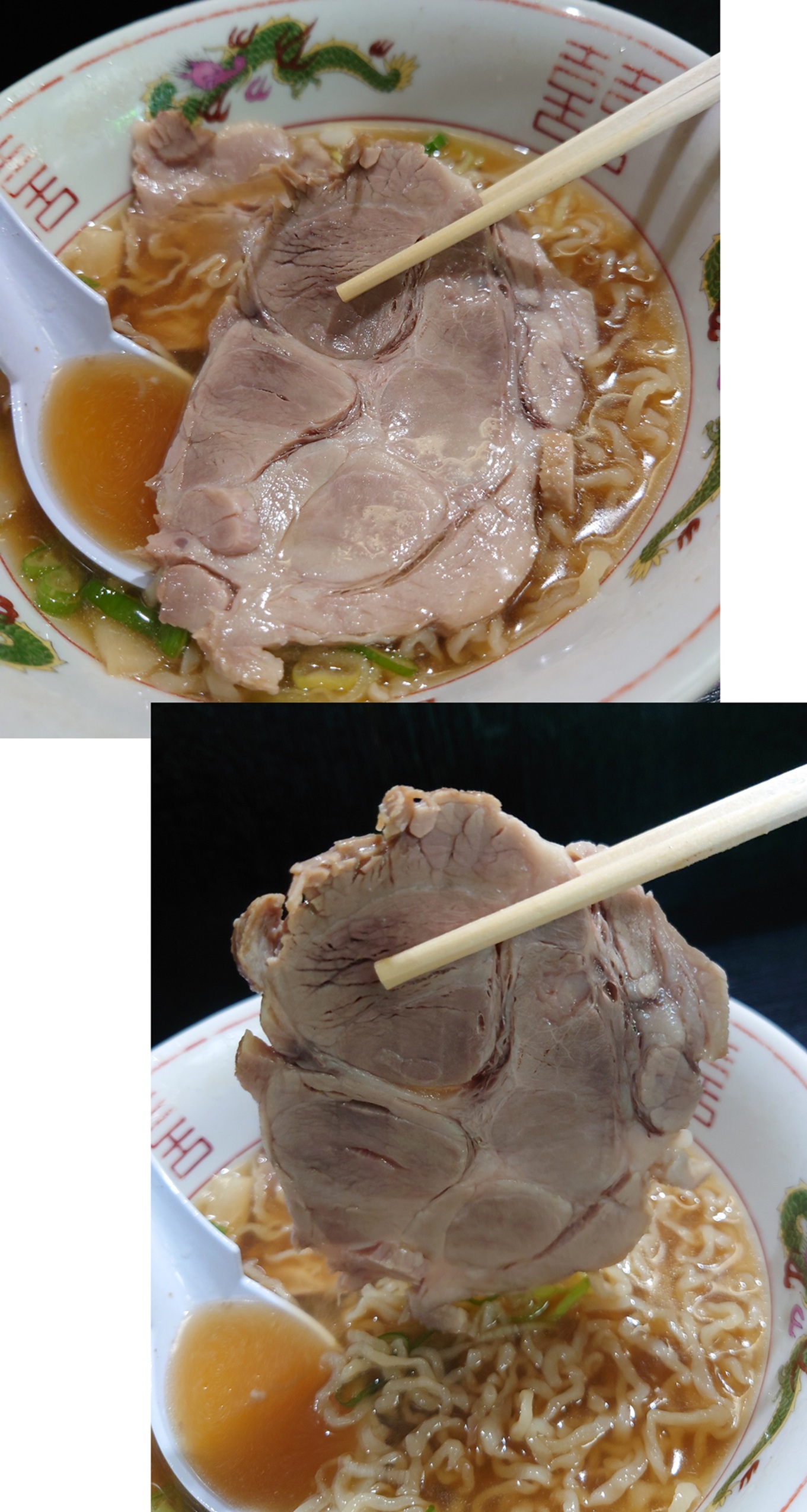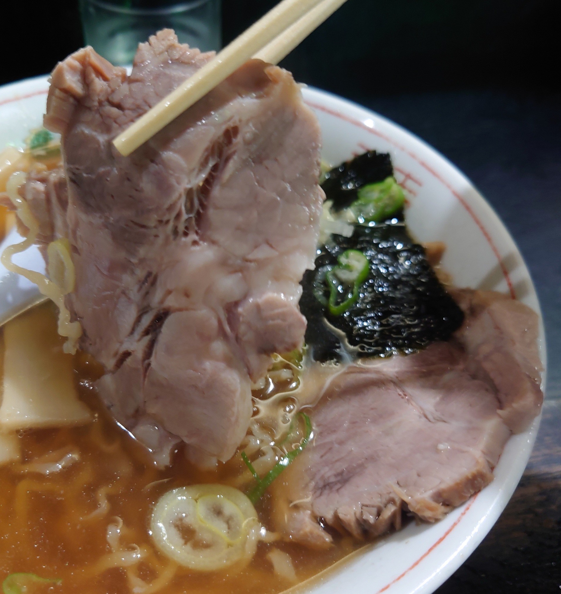 圧巻なのはチャーシュー。箸で持ち上げるとなかなかの重さ(笑)。